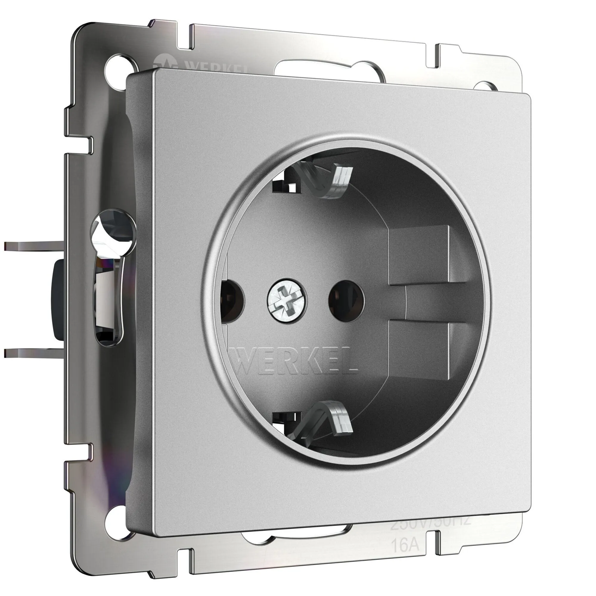 Розетка с заземлением 16 А (серебряный матовый) W1171065 — стиль, безопасность и долговечность от Werkel