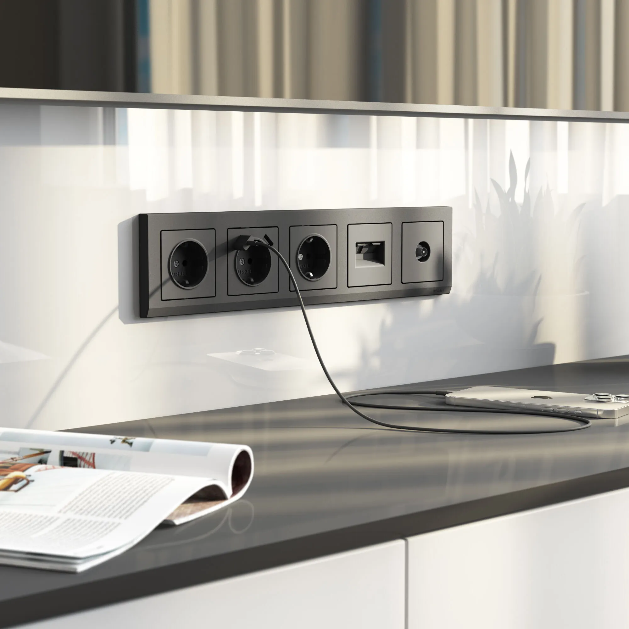 Коллекция Stark доступна в моделях от одного до пяти постов, включая специальную рамку для двойной розетки. Благодаря своей универсальности, коллекция подходит для любого помещения, будь то офис, квартира или загородный дом. Рамки легко комбинируются с любыми встраиваемыми механизмами Werkel, что позволяет создавать уникальные решения в интерьере.