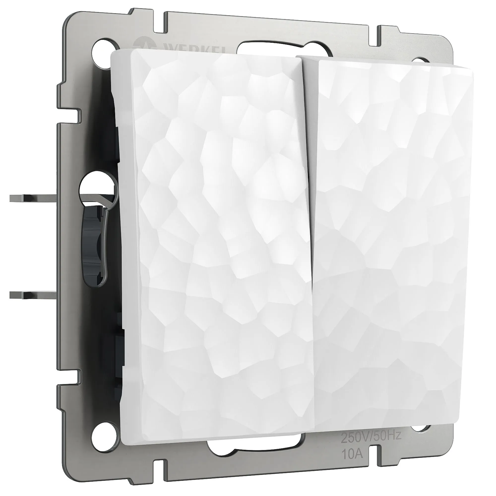 Выключатель двухклавишный проходной Werkel белый Hammer — управление светом из двух и более точек