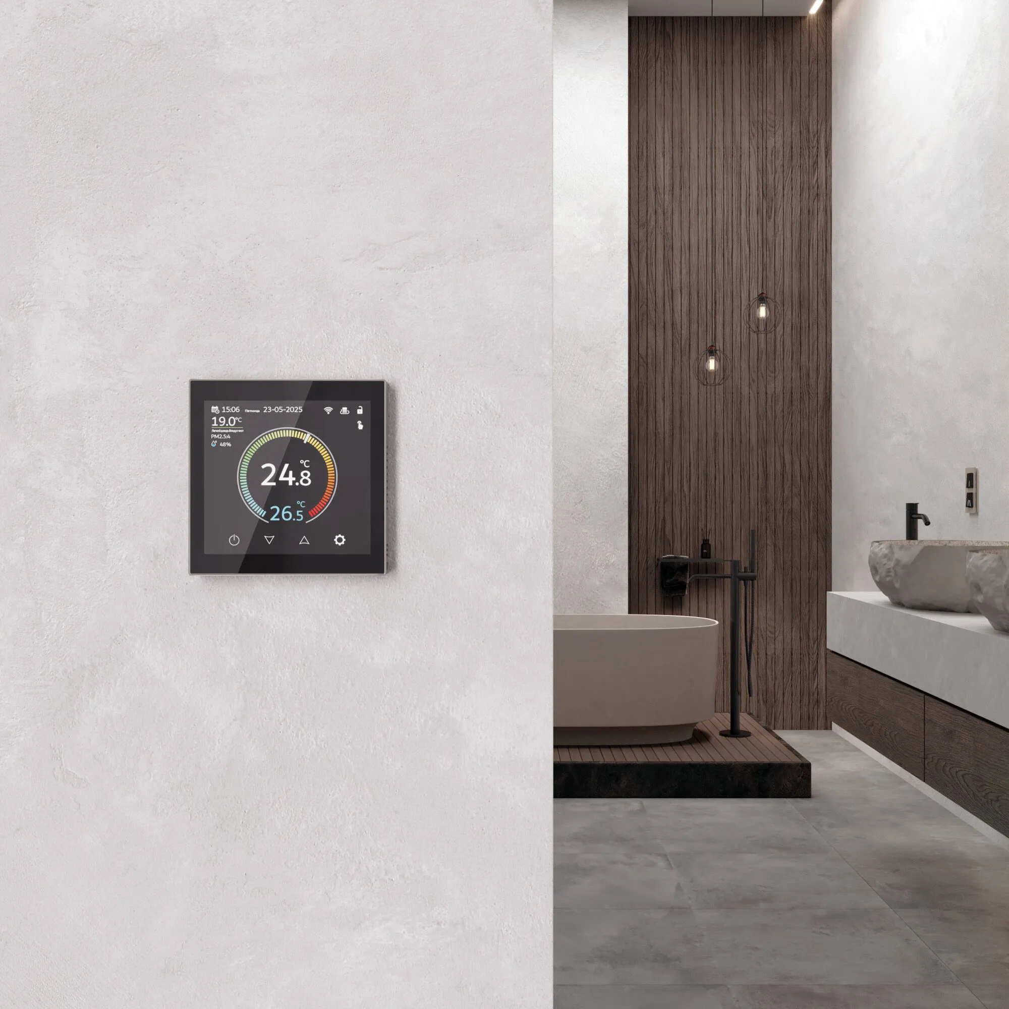 Умный терморегулятор для систем обогрева и тёплого пола сочетает в себе премиальный дизайн, расширенный функционал и удобное управление.